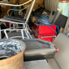 Tools, toolbox, lg ladder, misc. household items, furniture, boxes, bags, totes