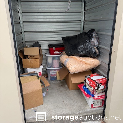 Additional Terms: Notice: The laws change from State to State however in some states, the defaulted tenant has the legal right to cure the account thus canceling the auction up until the cash payment is received from the winning bidder. AUCTION TERMS & CONDITIONS 1. We reserve the right to refuse service to anyone at any time for any reason. Auctions are public, but do not guarantee that all the members of the public can participate. 2. TERMS: CASH or CREDIT CARD ONLY on award of bid. All units must be paid for within 48 of Auction Bid being accepted. Winning bidder must appear in person with valid ID to pay and arrange for the clearance of the unit contents. 3. A $200.00 refundable cleaning deposit per unit is required. CASH ONLY. The Storage Facility may charge a higher deposit on extra-large units. Do not use the facility's dumpsters for trash. All items must be removed from the premises within 72 hours from winning bid payment. 4. Bidder agrees, understands and abides by all rules and regulations posted by the facility. The Bidder shall have access to the facility and the unit only during office hours 9:30am to 5:00pm Monday through Saturday. 5. All units are sold AS IS, WHERE IS; Storageauctions.net, Facility Owner, Manager, or Agent makes no guarantees as to the contents of units. Unit buyers: beware of the possibility that all boxes may be full of trash or empty. If so, they are still yours since unit is sold AS IS; Newspaper legal ad may not agree with the goods in the unit. Do not speculate on what may be in the units. In accordance to Federal laws we are restricted from selling Alcohol, Tobacco, Firearms, Explosives and Controlled Substances. You are required to surrender these items to the Storage Co. and they will be surrendered to the proper authorities. 6. All sales are final. No refunds, exchanges, or credits of any kind will be made. 7. All personal papers (birth certificates, tax records, pictures, yearbooks, checking account information, etc.) found in storage unit should be returned to the storage company. If any of these terms are unacceptable or offensive to you, do not participate in the sale. 8. Bidder shall be responsible for anyone who is acting on behalf of bidder in any capacity and shall indemnify the storage facility, its Owner, Managers, and Agents, and Employees, etc. for any action whatsoever that may be born in any manner and hereby waive any claims against the storage facility. This waiver and responsibility shall also include any personal property damage, property damage to the self storage facility, its representatives, employees, occupants and customers. 9. The storage company is not responsible for losses due to fire, theft, vandalism, mysterious disappearances or any other events. Bidder shall provide insurance for losses incurred before, during and after sale. 10. The storage company reserves the right to bid. 11. Storage Company's liability for undeliverable units is limited to monies collected for purchase of unit(s) and cleaning deposit(s) only. The Storage Company will make all reasonable efforts to deliver unit or units to successful bidders. Bidder does not own these items until they are totally removed from the facility. The facility can claim items at any time without notice until they are totally removed. Any items that have been abandoned after 72 hours will be construed as abandoned property. Storage Company reserves the right to refuse to rent Storage Units to Auction Buyers. Bidder will not be refunded bid price and/or cleaning deposit. 12. The ultimate responsibility of the unit being emptied and cleaned is that of the buyer. The buyer is responsible no matter what arrangements have been made to have the unit emptied. Legal action will be taken against the buyer, for costs and/or time involved in cleaning any debris left behind. The bidder hereby agrees that the terms and conditions above as part of the Auction Terms & Conditions.