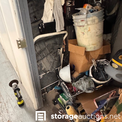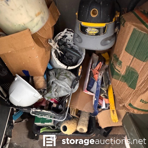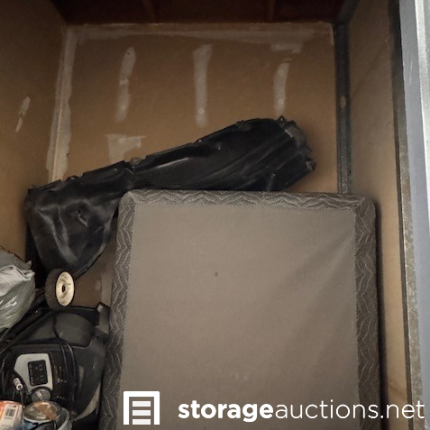 This unit appears to contain, bx spring mattress, handyman materials, step stool, power supply, shop vac, hard hat, misc items