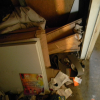 APPROXIMATELY 24 BOXES OF FLOOR TILES, COT, MOVING BOXES, 2 DUFFLE BAGS, ROLLING CLOTHES RACK, WINOW LOCKING SYSTEM