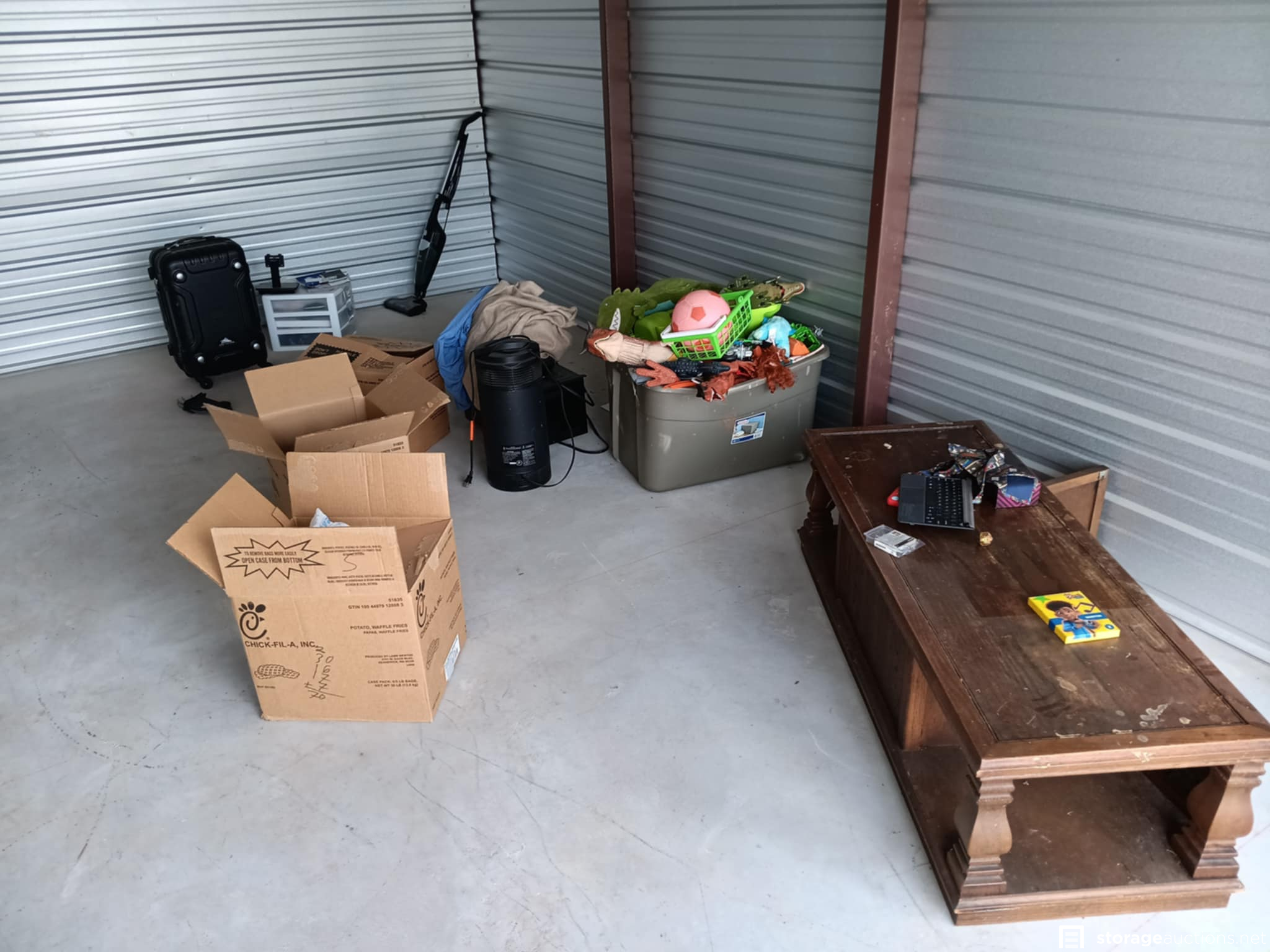 Unit appears to contain boxes, vacuum, table, toys, etc.