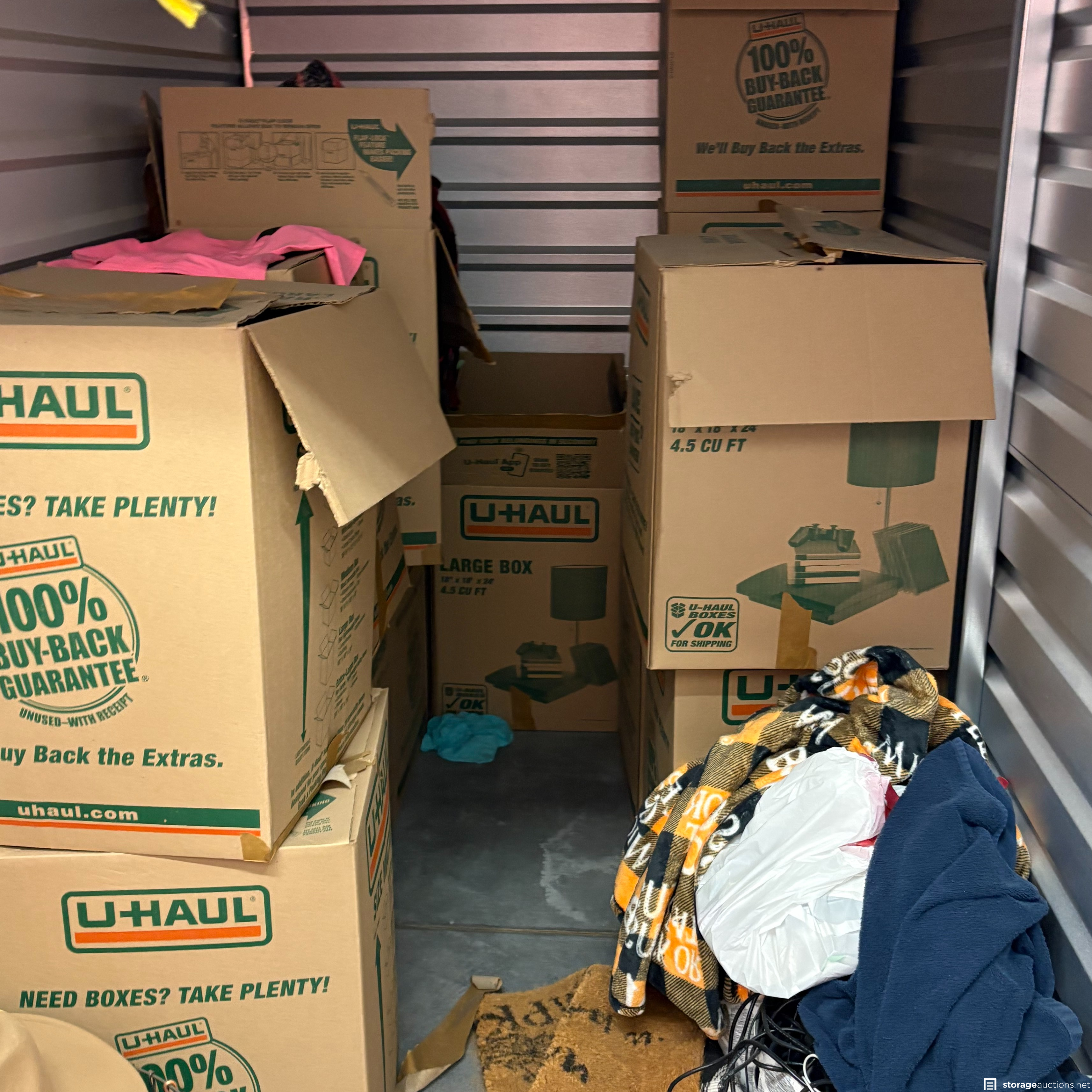 Additional Terms: 72 Hour clean out. No dumpster available. $100.00 clean fee. Unit is forfeited after 72 hours of no clean out. No refunds . U-Haul requests that all items of a personal nature be boxed at the time of removal from the unit with the unit number on the box (photos, home movies, personal papers/records) and returned to the office. U-Haul also request that all items marked or identified as U-Haul equipment be returned to the office when unit is emptied. Everything must be removed from unit within 72 hours otherwise you forfeit unit with No Refund. Failure to remove eveything from unit will result in denied access to Uhaul Auctions in the furture.