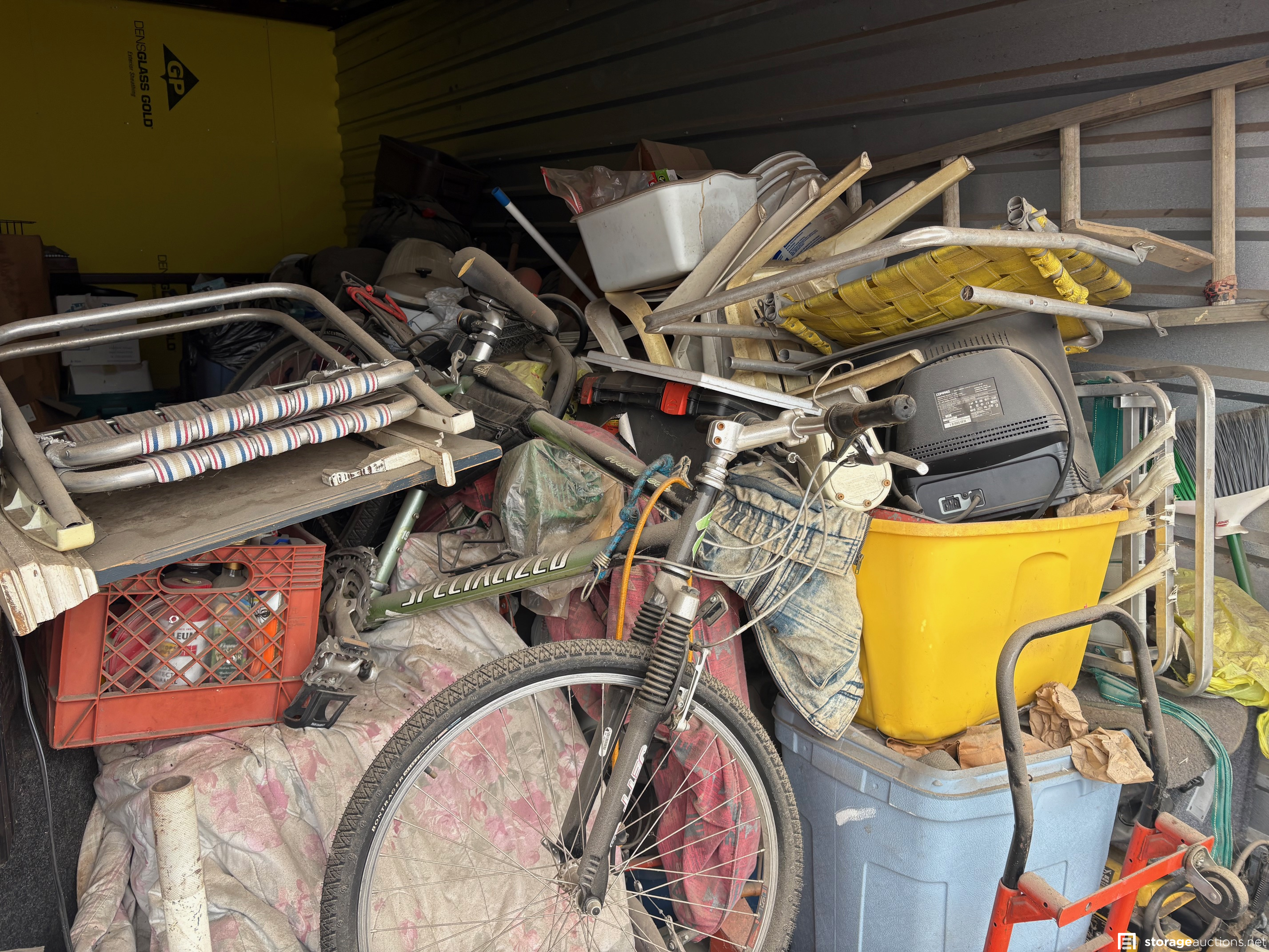 BIKE, TV, AIR BUBBLE, GENERATOR, AUDIO SPEAKER, BIKES, COOLERS, LADDERS, TOTES, MICROWAVE, LAWN CHAIRS, MISC ITEMS