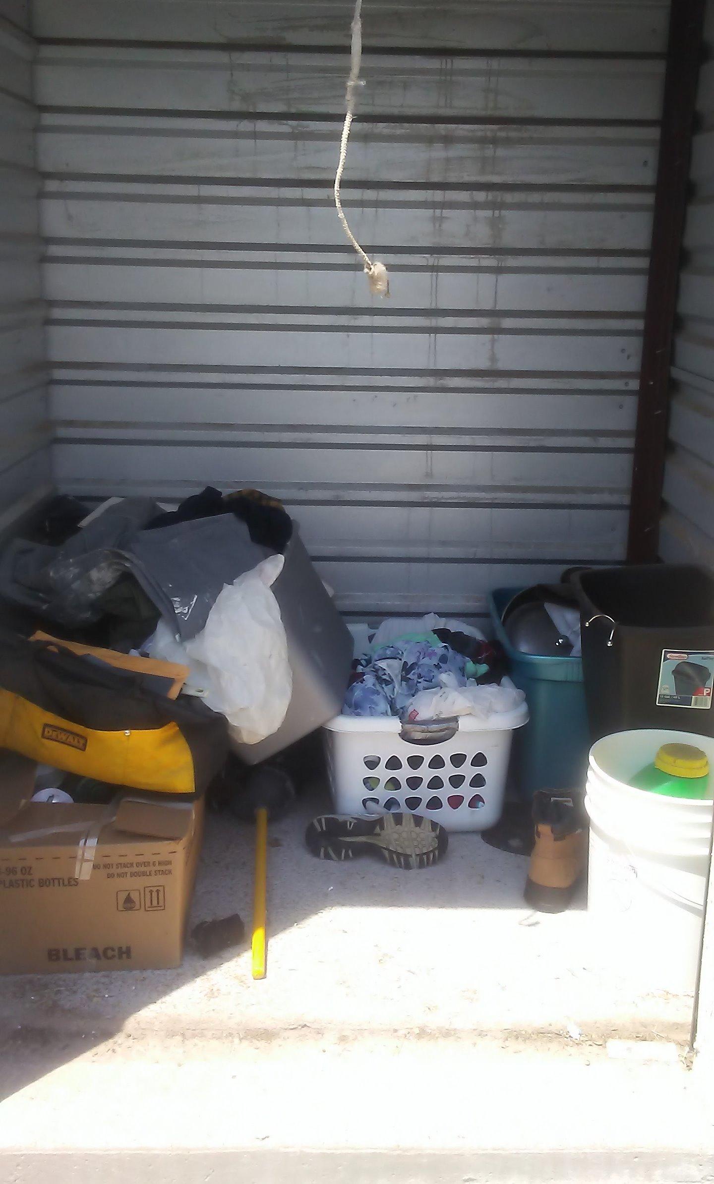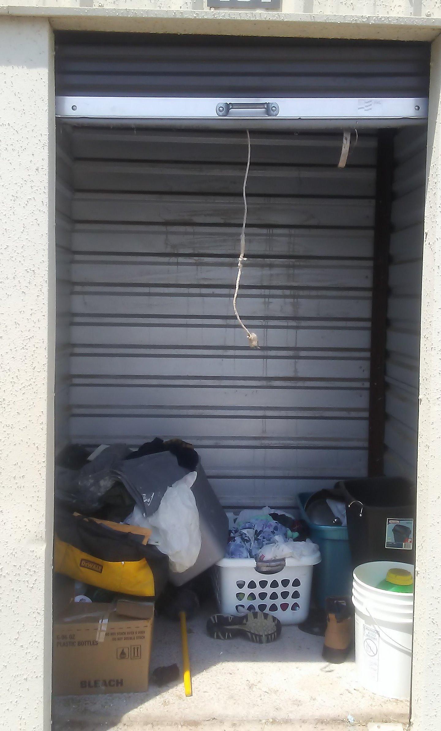 Unit seems to have: Laundry basket, boots, tubs, cookware