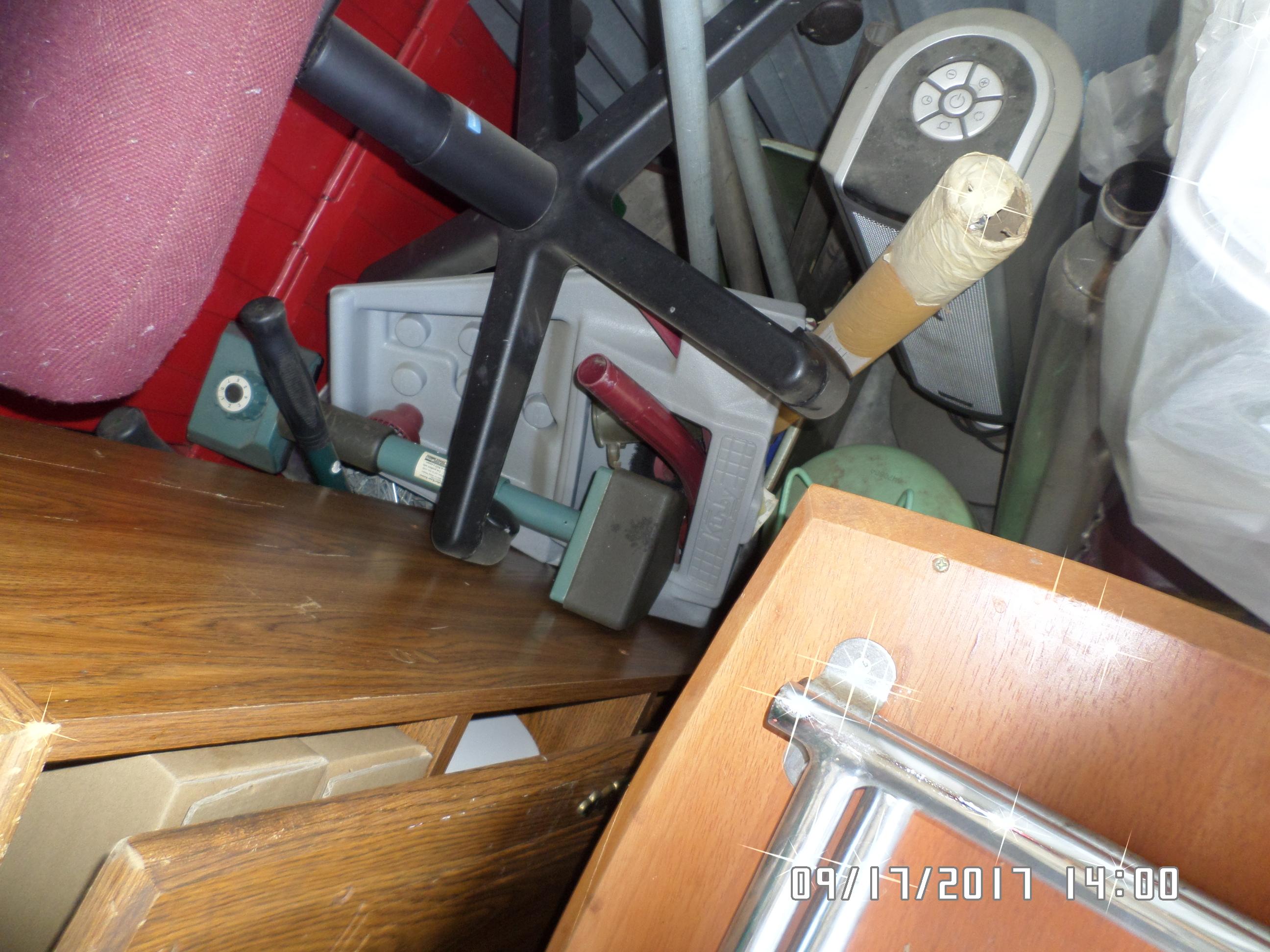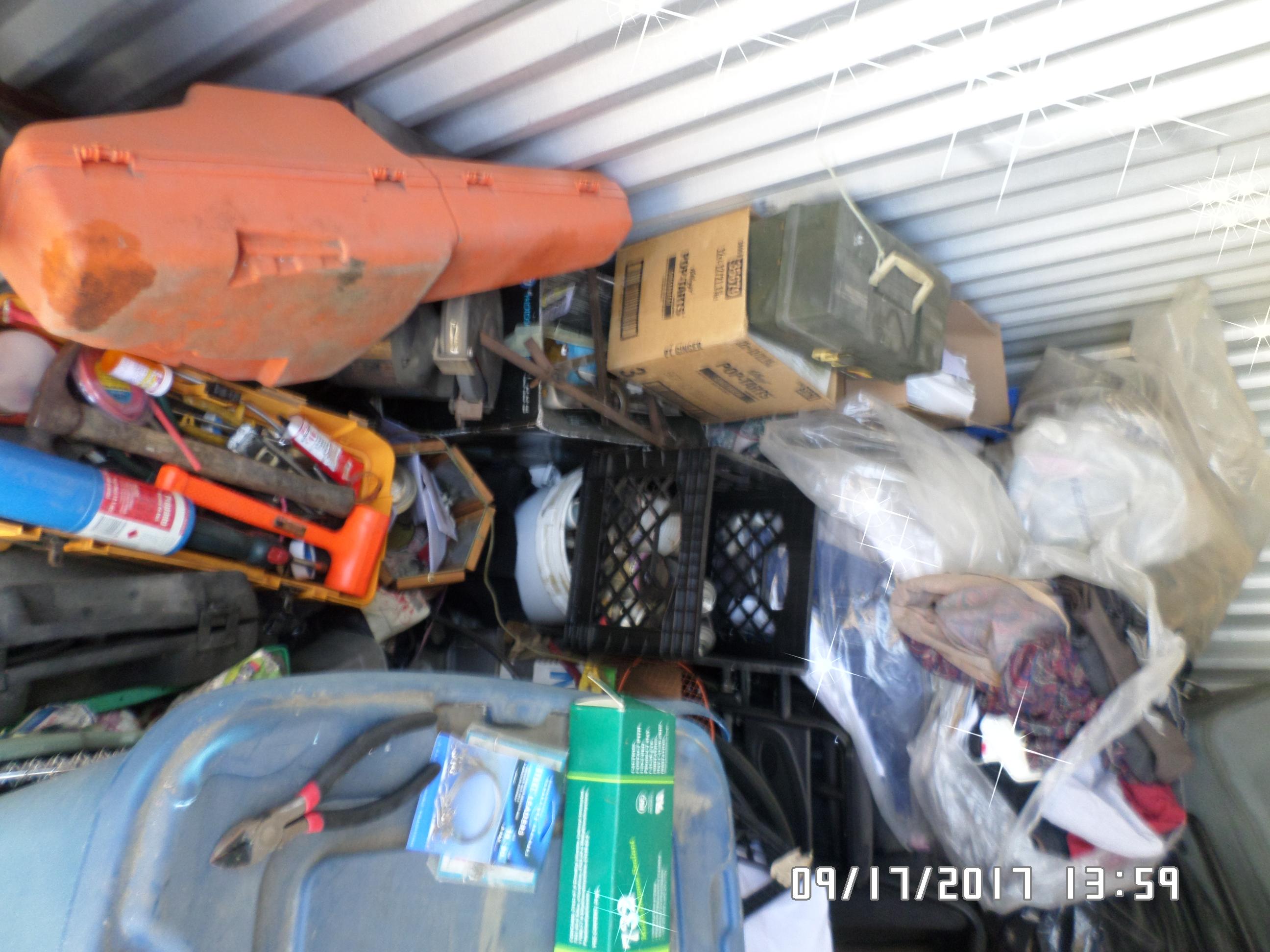 LOTS OF TOOLS OF ALL KINDS. CHAINSAW, FISHING POLES AND OTHER HUNTING EQUIPMENT. CAMPING AND OUT DOORSEY EQUIPMENT. SOME HOUSEHOLD ITEMS AS WELL. LOTS OF BOXES AND TOTES BURIED UNDER THE TOP LAYER. WITH SURPRISES IN THEM AND HOPEFULLY THE GOOD KIND ;)