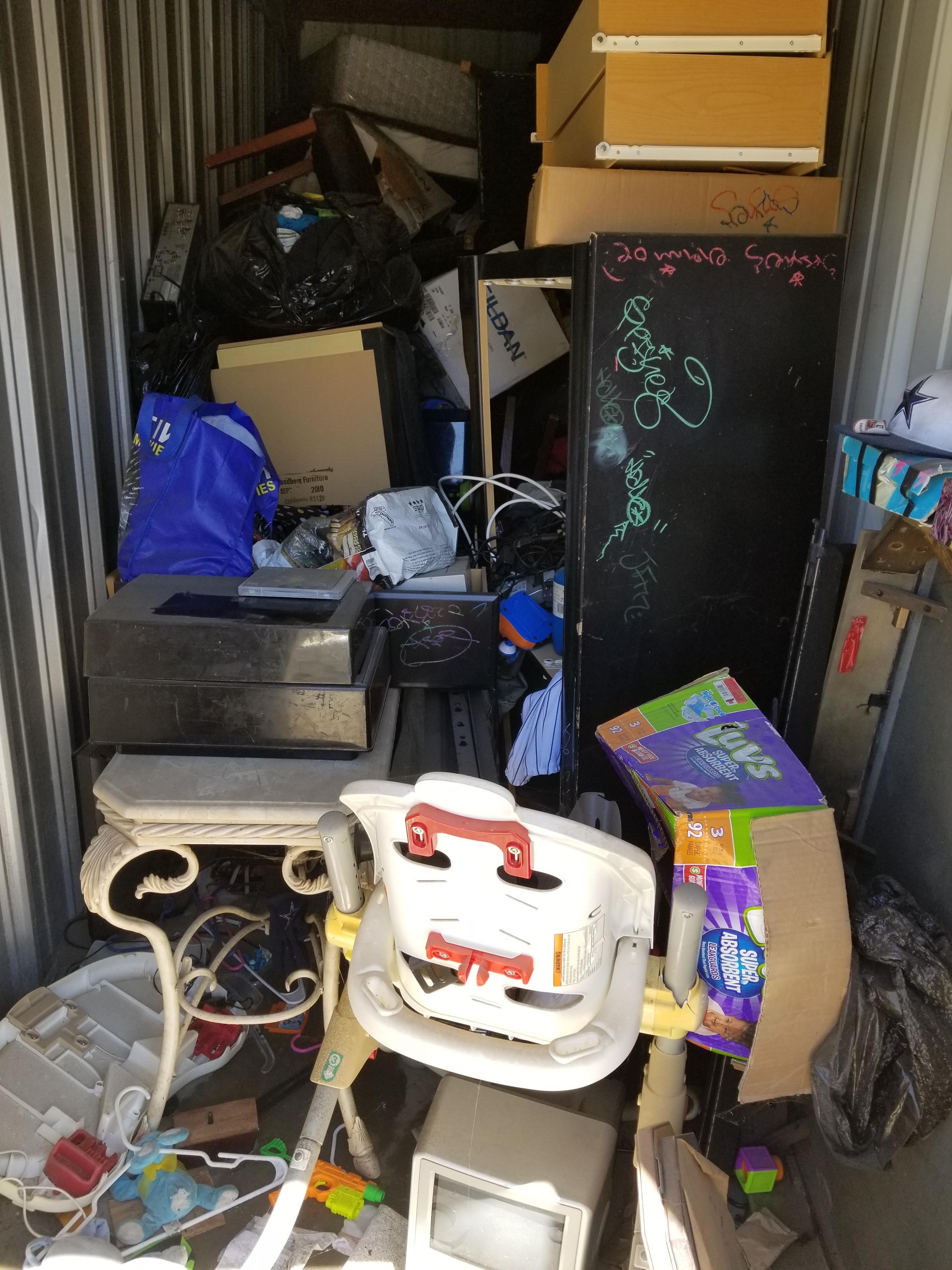 Unit appear to have: Dresser, mattresses, boxes, baby items.