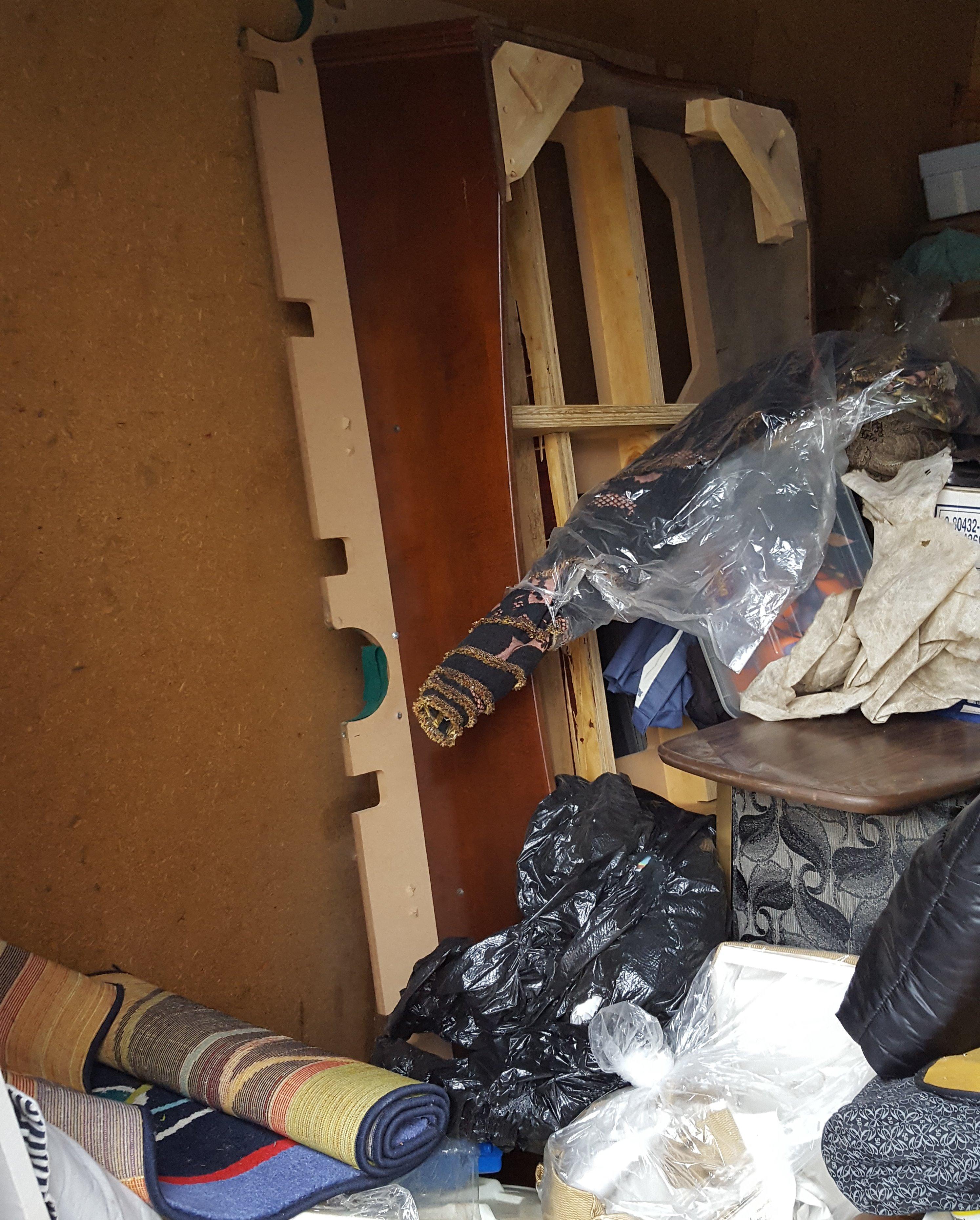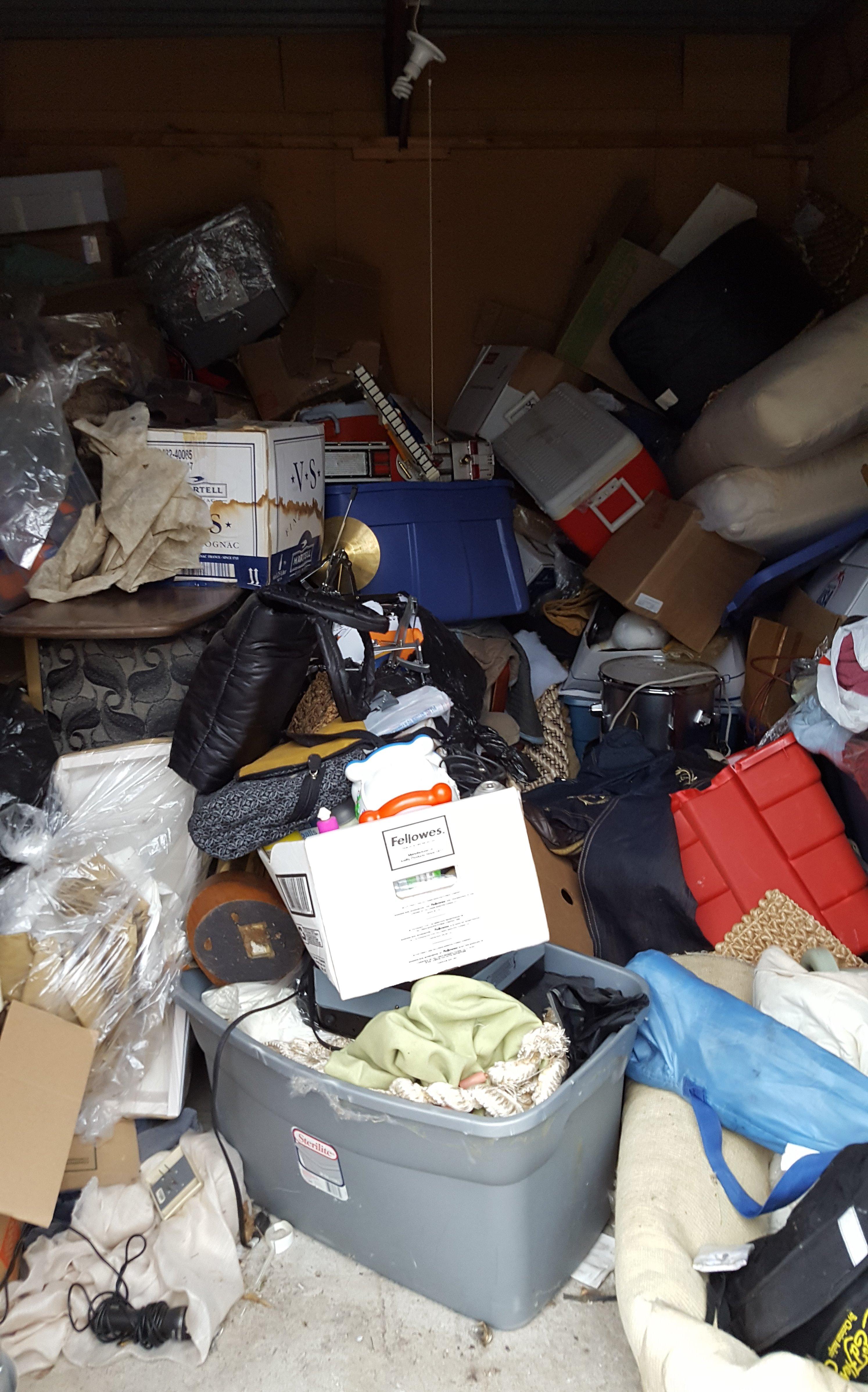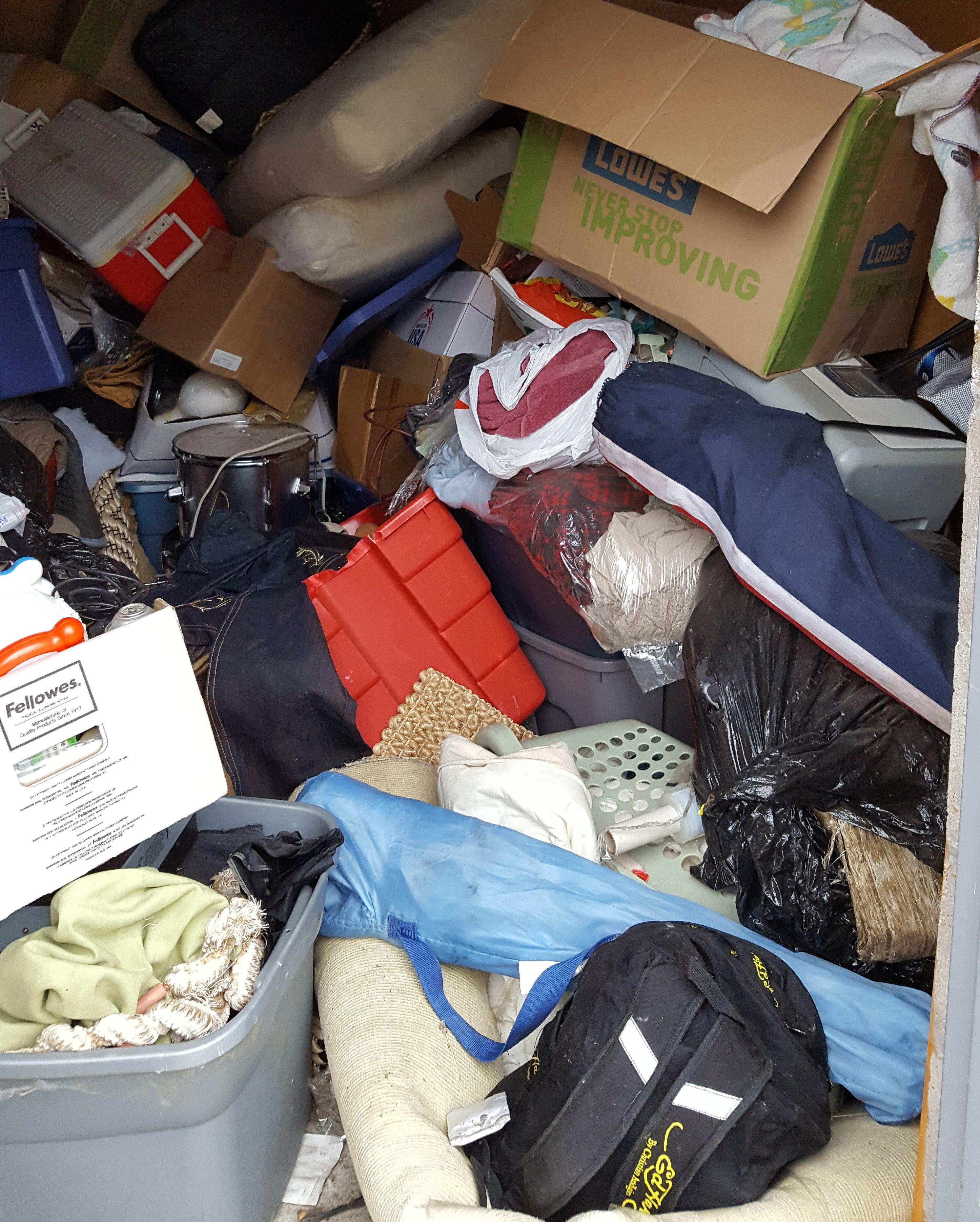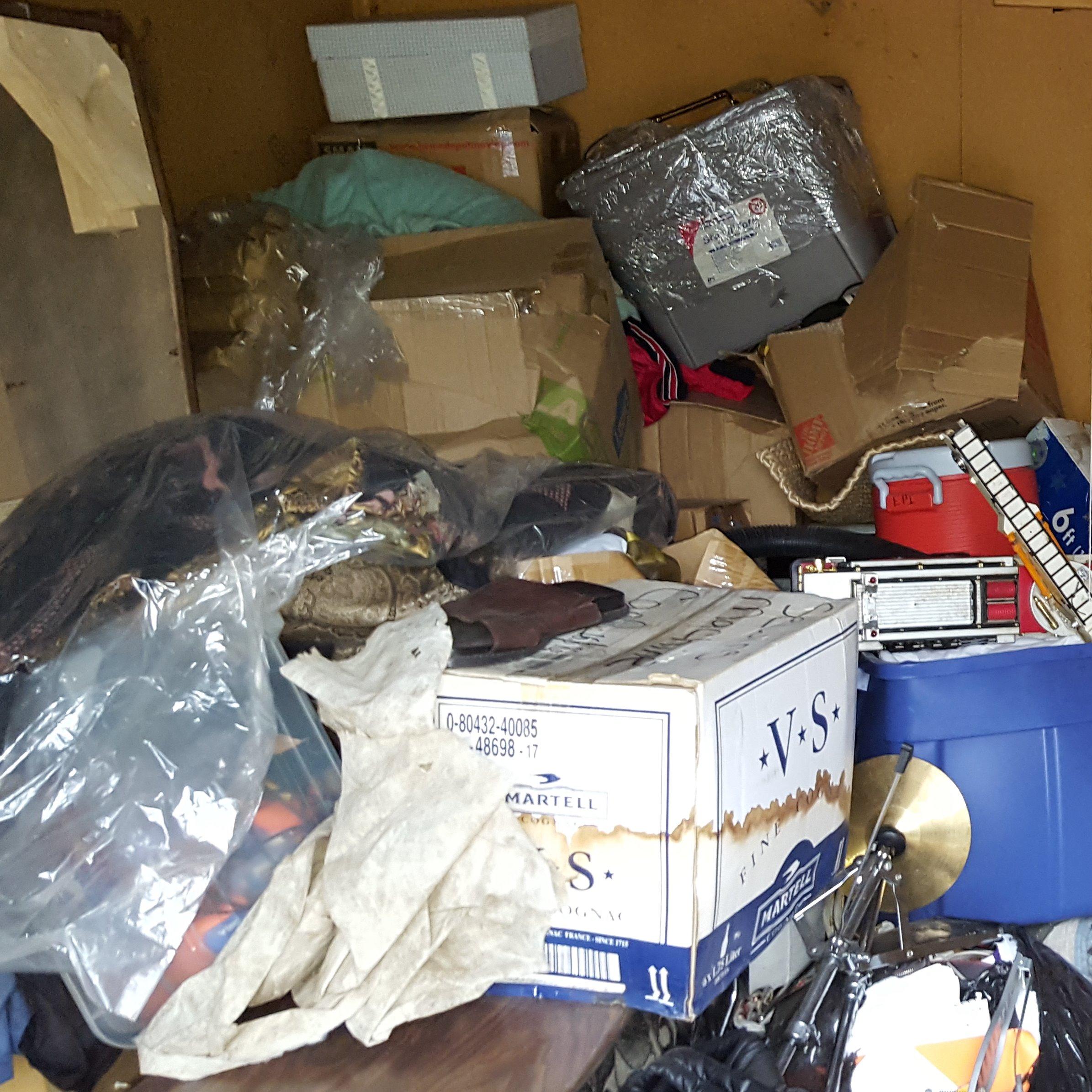 Unit has a lot of coolers , bags, rugs, toys, drums, pool table, small bar, and a lot of boxes and totes