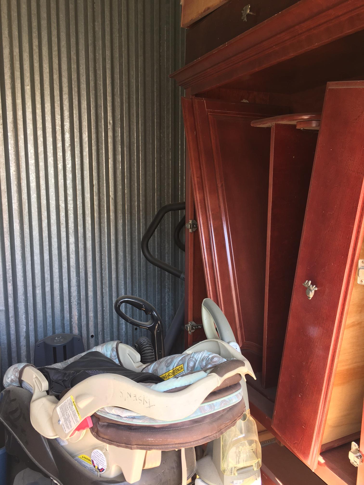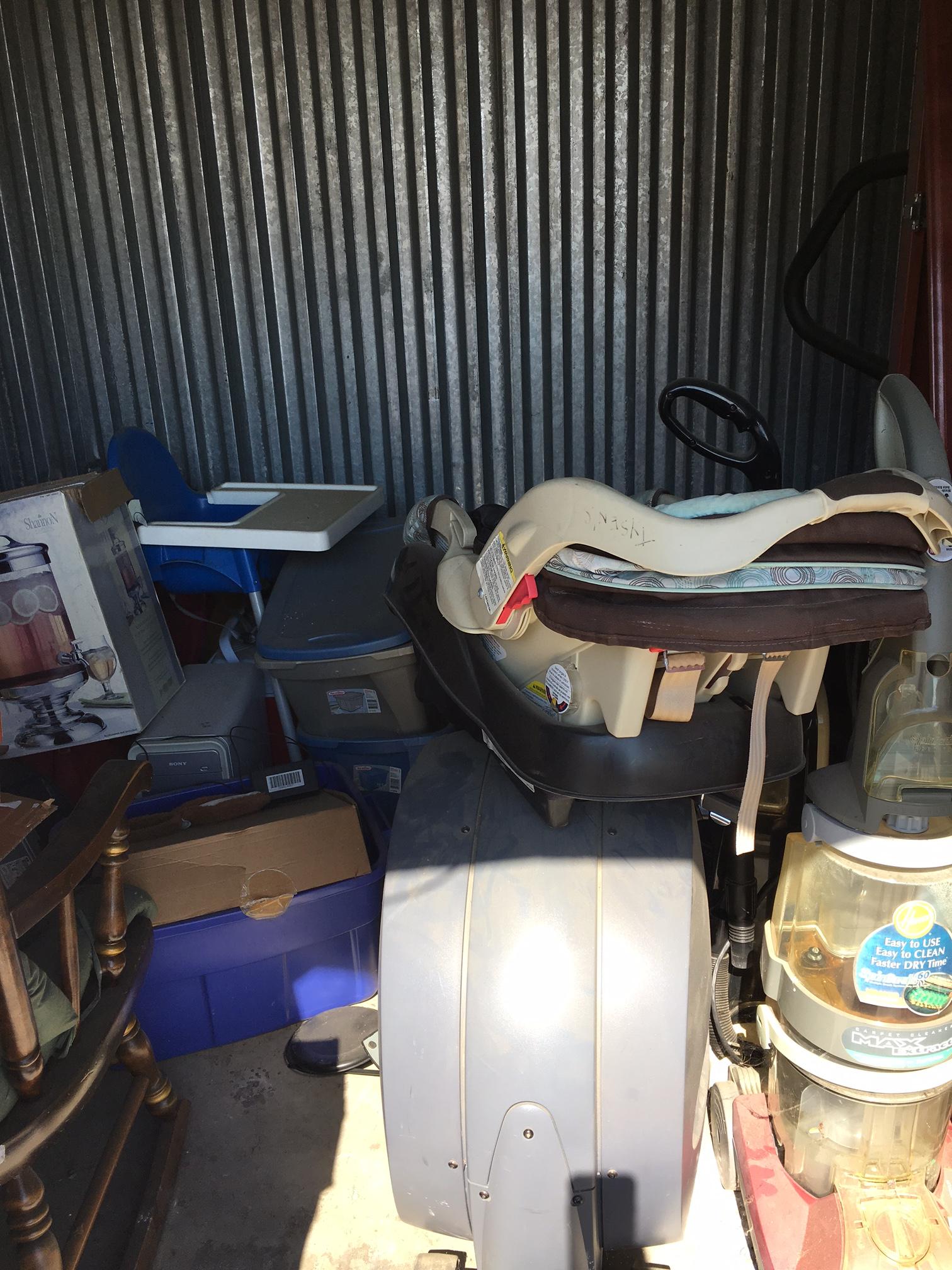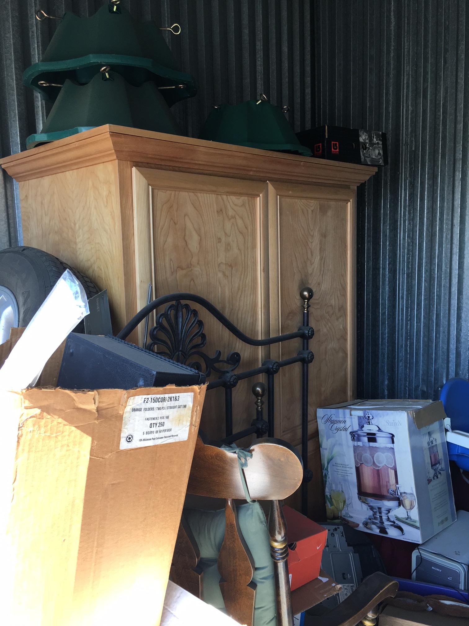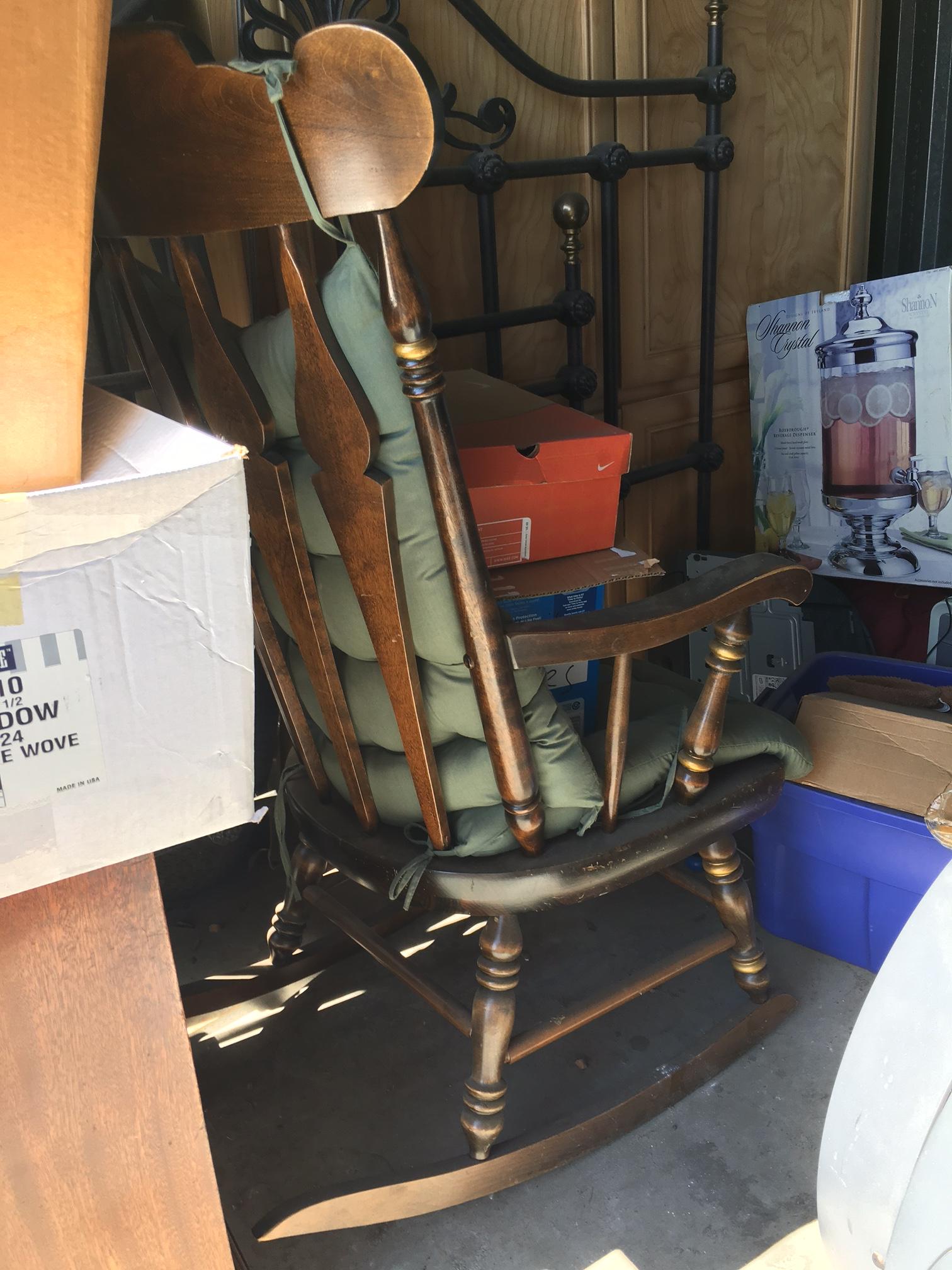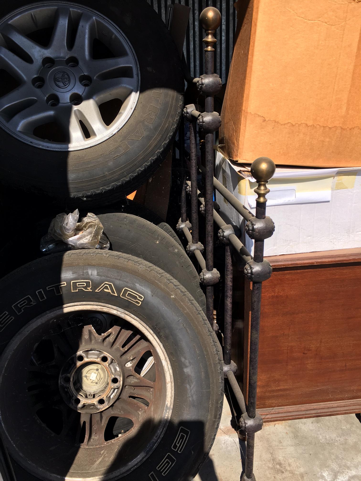 2 Armoires, Vacuum Cleaner, 4 Tires, Elliptical Machine, Rocking chair, Misc. Totes, Cast Iron Bed Frame, Beverage Dispenser in Box, Sony Hard Drive w/Printer
