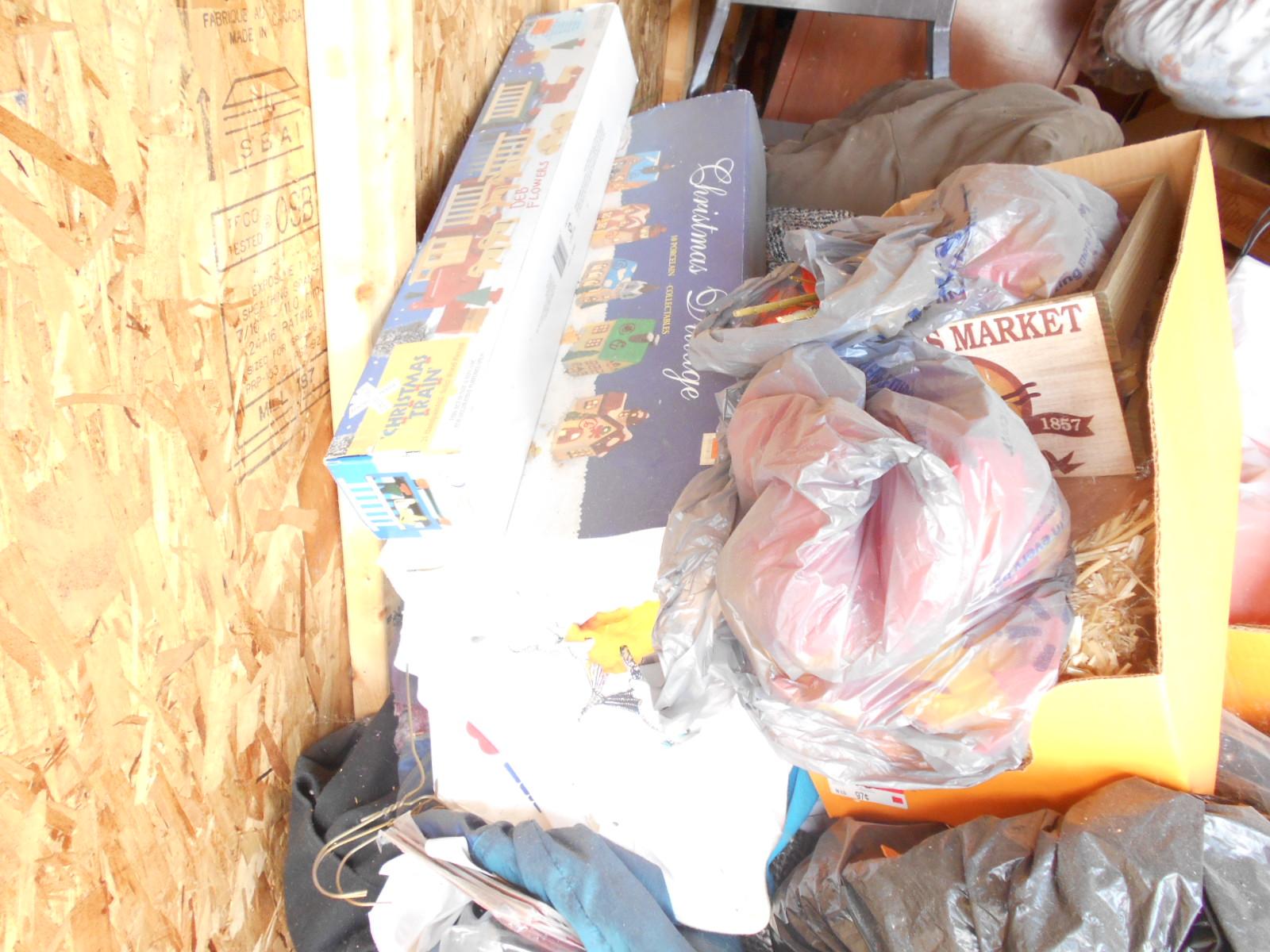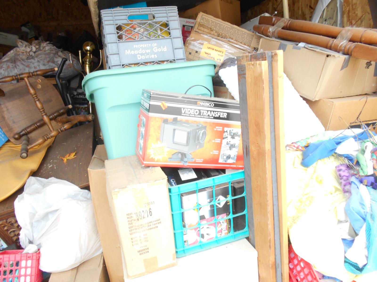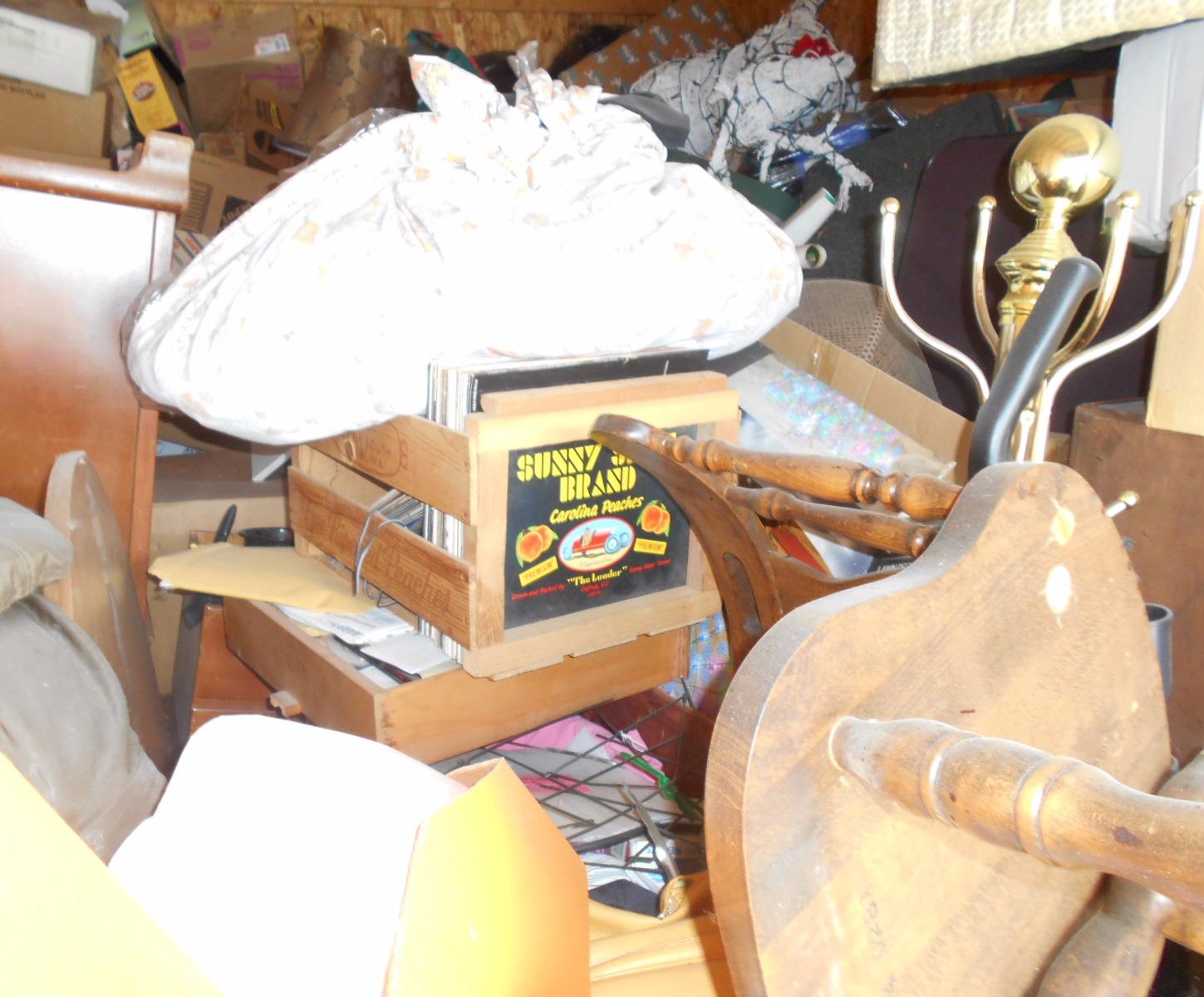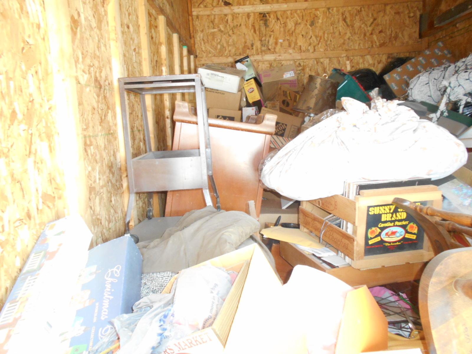 Filing cabinets, x-mas ornaments, bags, boxes vacuum, totes, ironing board, old records many misc items unit is full