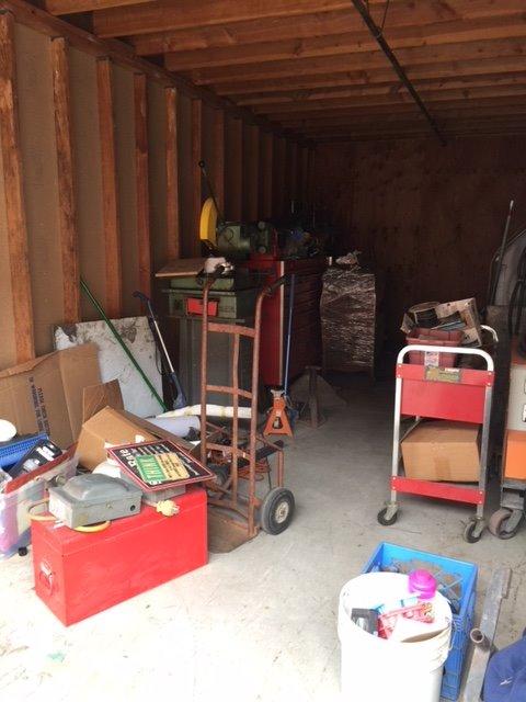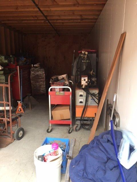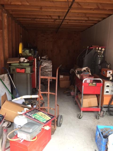 UNIT APPEARS TO CONTAIN: TOOL BOXES, HAND TOOLS, POWER TOOLS, Drill Press, welding unit, BOXES AND TOTES