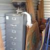 Oak bed frame, Old Royal typewriter, 4-drawer file cabinet, TV, Misc. boxes, books, butcher block table, hand truck, sleeping bag, small barbeque.