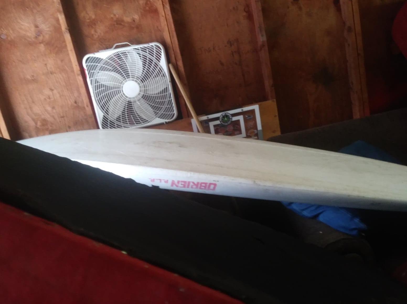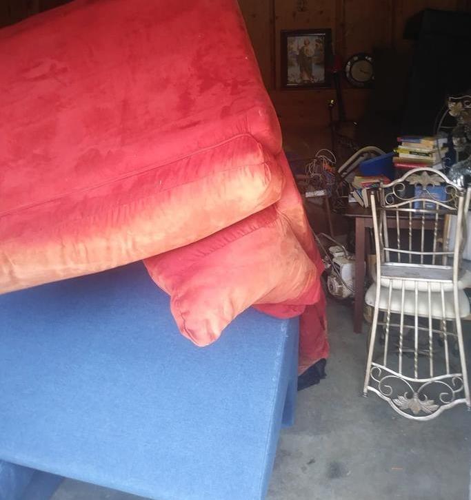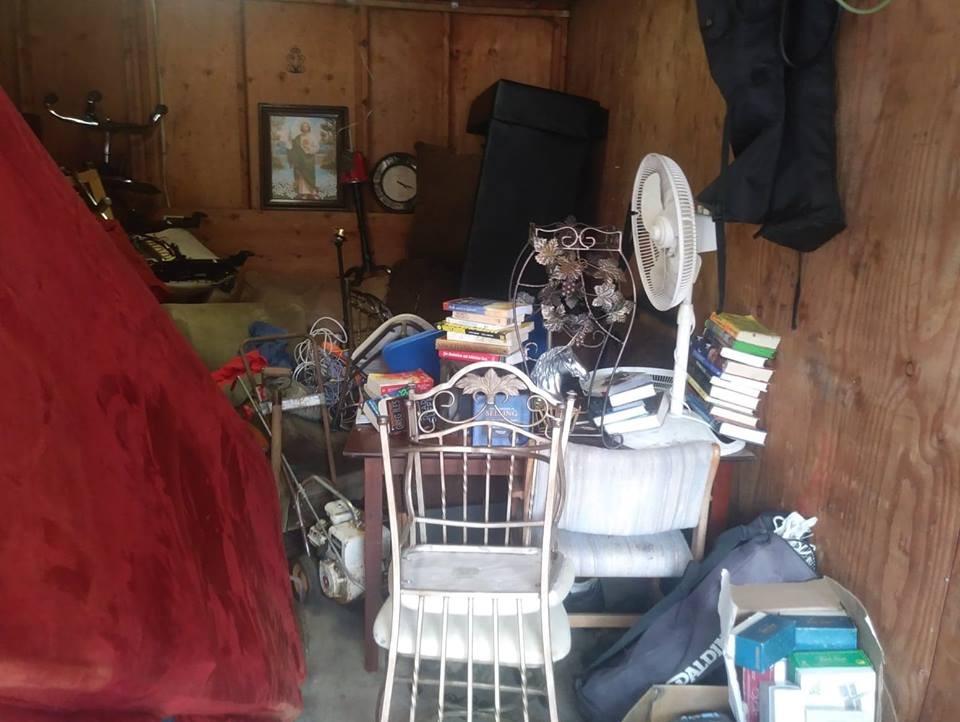 Appears to contain.... windsurfing board, lots of furniture, table, chairs, dining chairs, couches, loveseats, fans, outdoor stuff/equipment, books, and more !