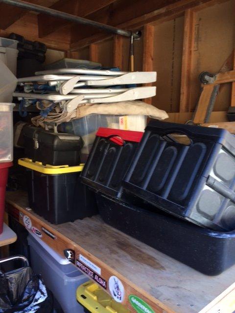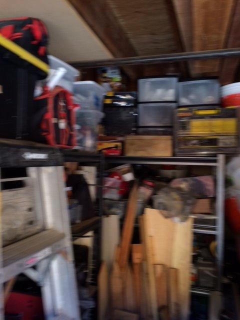 UNIT APPEARS TO HAVE: A SAFE, POWER TOOLS, TOOL BOX,HAND TOOLS,BOXES AND TOTES, SHOES AND BAGS AND VIDEO PLAYER