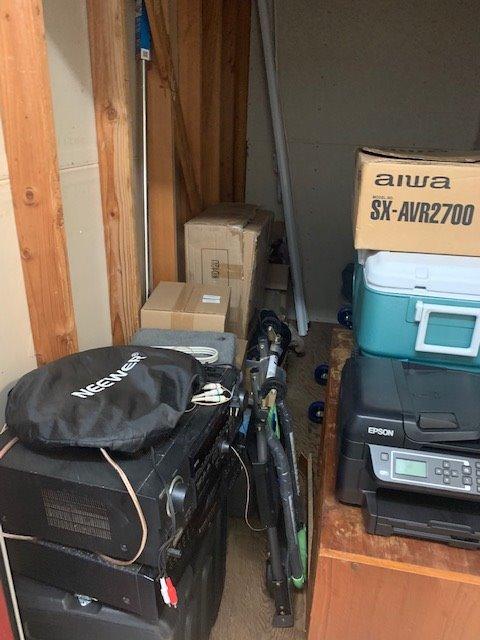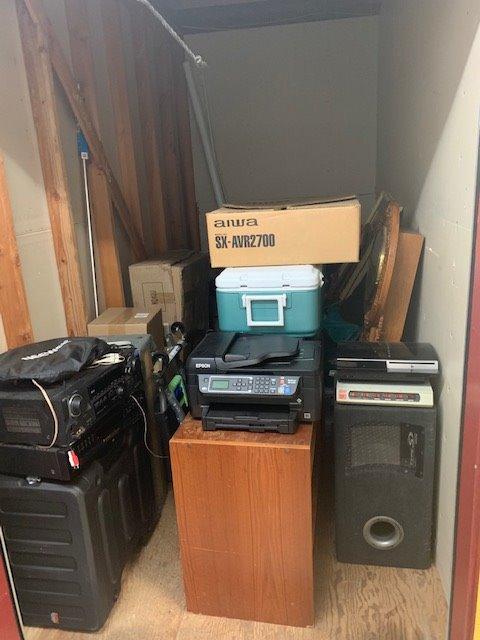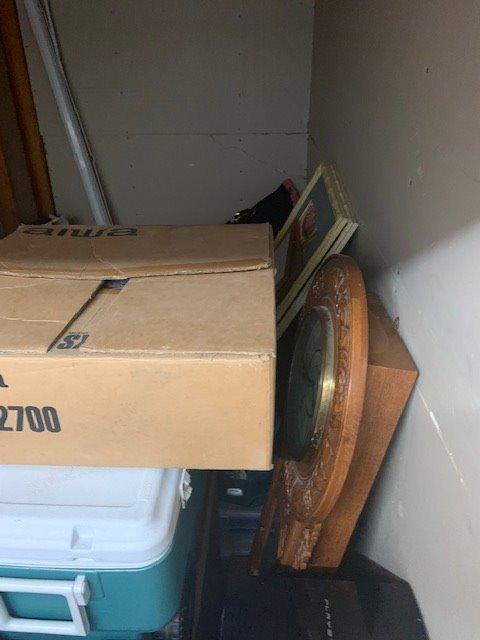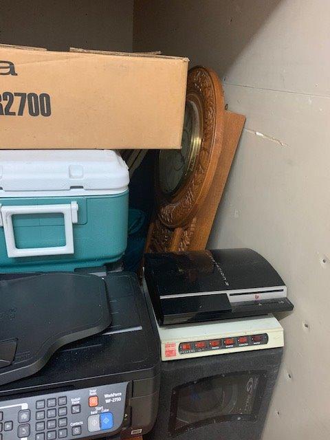 Stereo Equipment, Playstation, hand trucks, pictures, Misc. Household items, small grandfather clock.