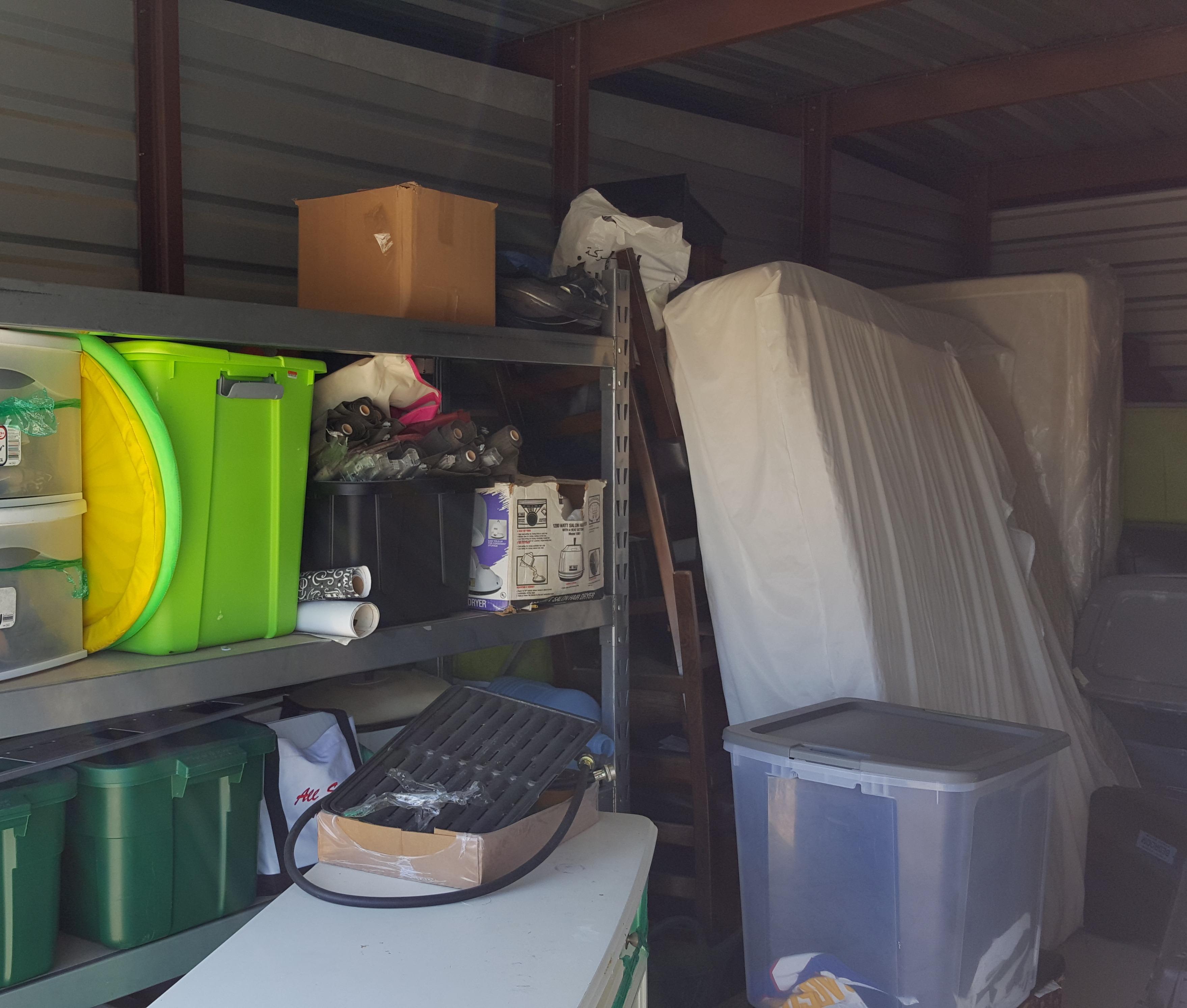 Shelves, Many tubs, Trunks, Chester drawer, Mattresses, Misc. items.