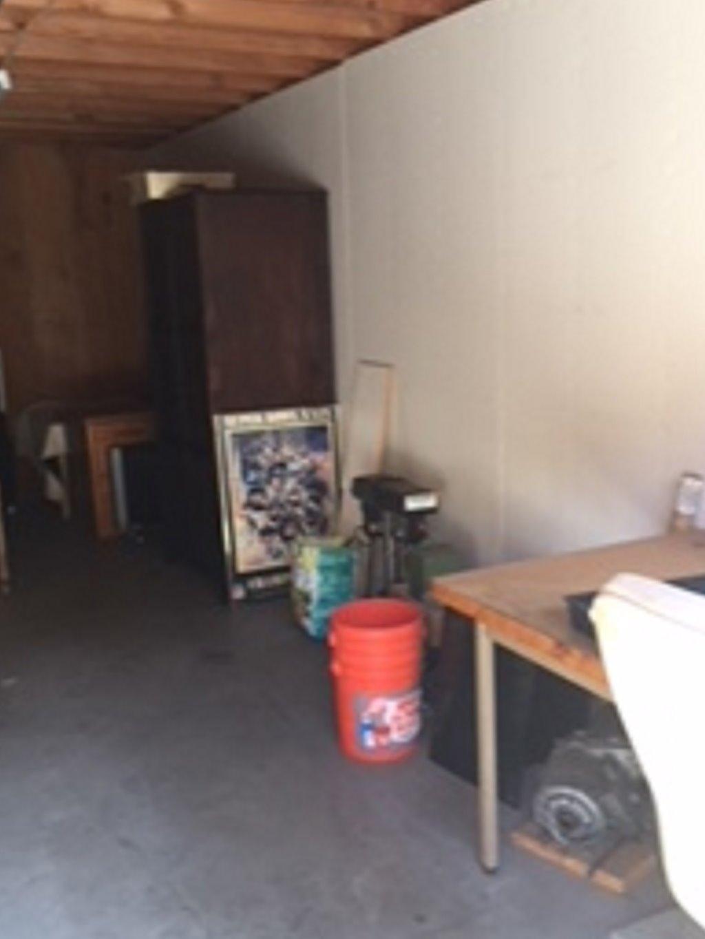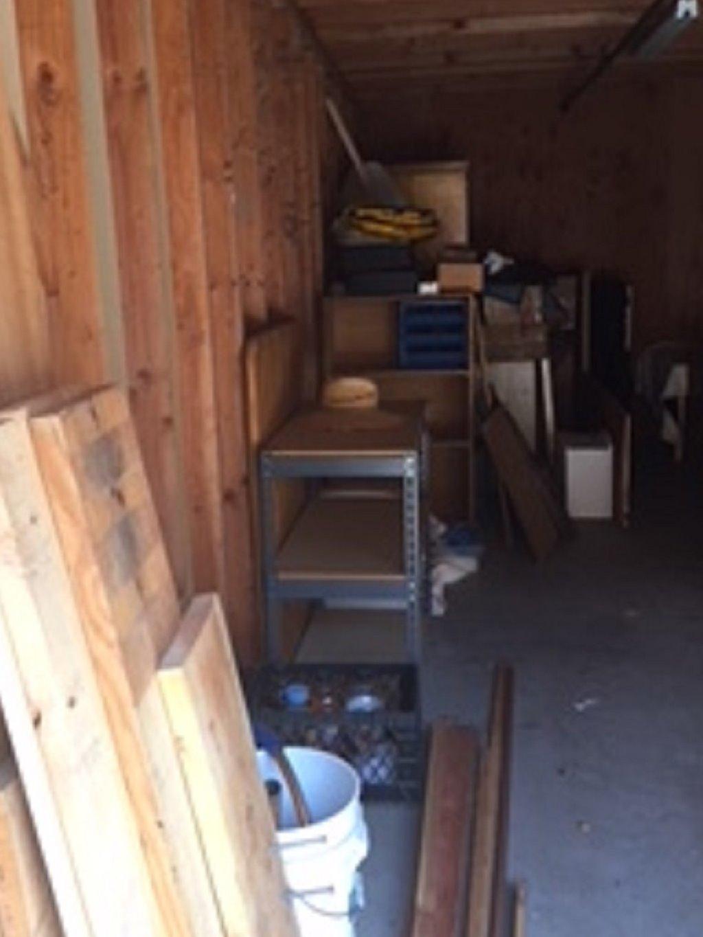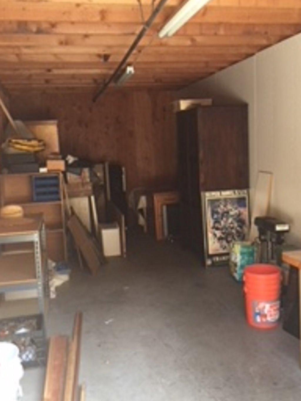 UNIT APPEARS TO HAVE: TOOLS, WOOD, ART, OFFICE CHAIR, WORKBENCH, SMALL MACHINERY.