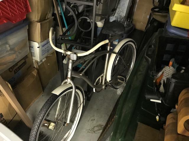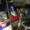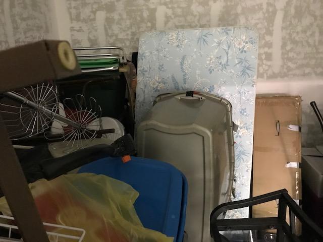 This unit has a weedeater, bar stools, cedar chest, skateboards, dishes, a full size punching bag, bicycle, headboard, coolers and miscellaneous boxes, mattress and box springs for a full and twin bed. A few Christmas decorations.