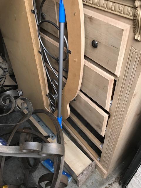 If you're looking for a beautiful bedroom suite this unit has it. It contains bedframe, headboard, dressers, night stands to match, wrought iron round , oval and square tables, lamps and shades, mirror, shelf unit and sofa. New bed sheets and and ironing board.