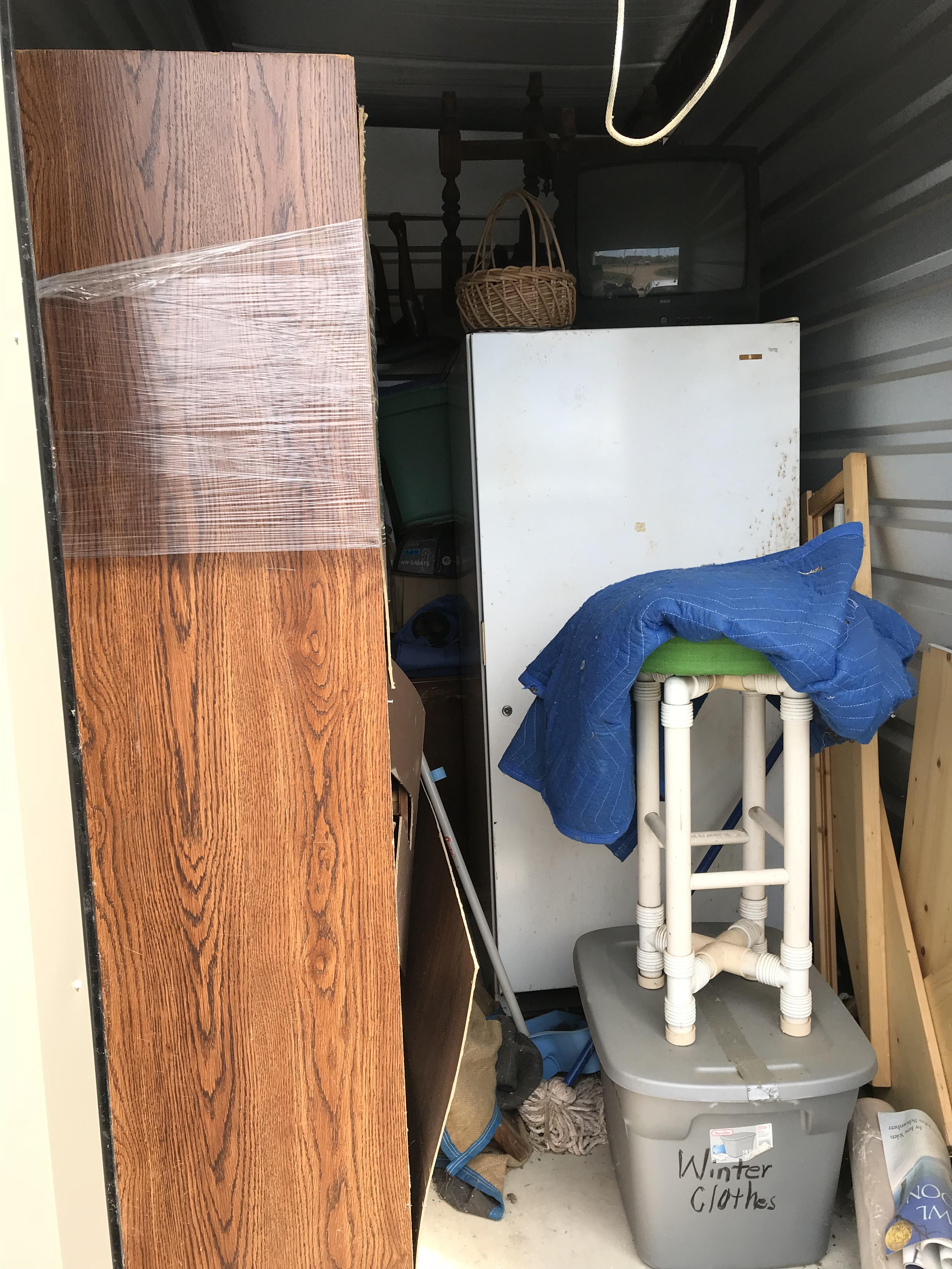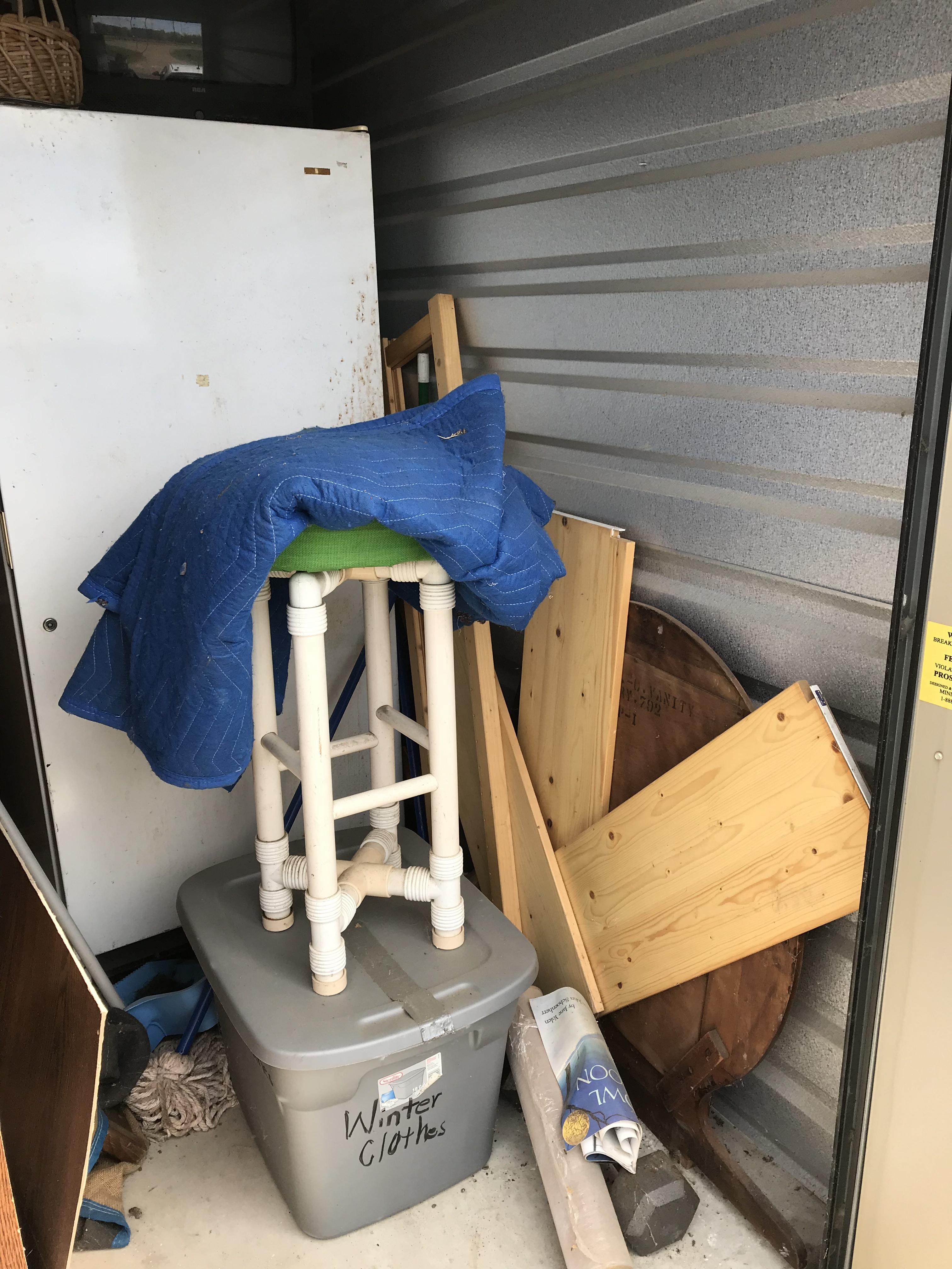 Unit 3, 5x10, Furniture, Up Right Deep Freezer, Weights, Boxes, Etc.