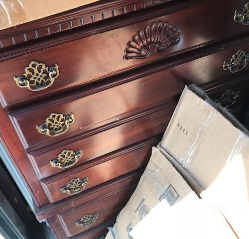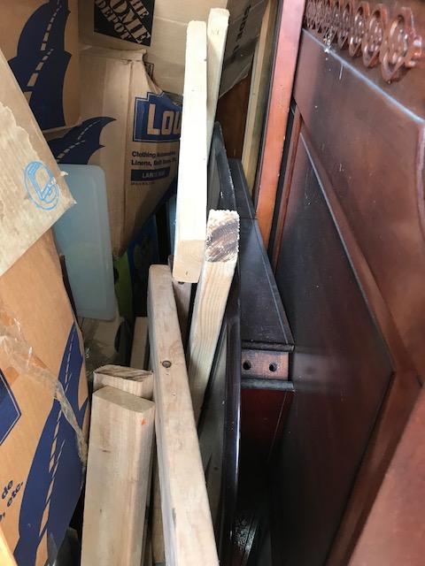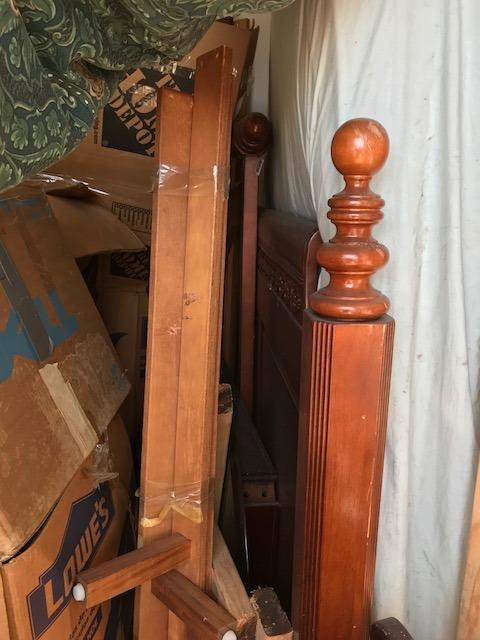 This unit is has beautiful bedroom suite. Mattress and box spring, headboard and footboard, dining room table and chairs, nightstands, dressers, pictures and several miscellaneous boxes, christmas tree and DVD player.