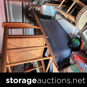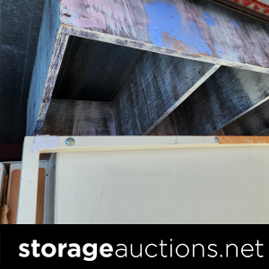 This unit contains end tables, dog kennel, clothes other misc. Household goods.