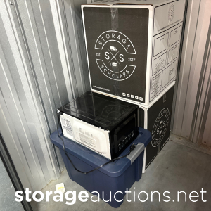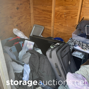MICROWAVE, SUITCASE, CLOTHING, TOTES, TV, PRINTER, TOASTER, SHELVING, MISC ITEMS