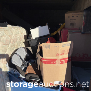 TOTES, BOXES, DRESS, TABLES, MATTRESS & BOX SPRING, CHRISTMAS TREE, CAR SEATS, FISHTANK, MISC ITEMS