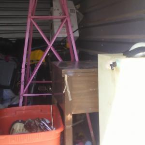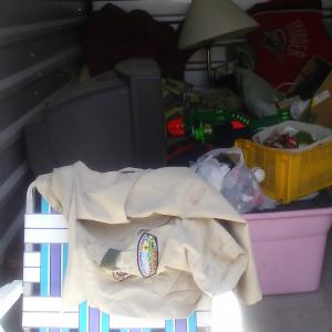 Unit seems to have: kids powerwheel, power washer, windmill, water cooler, wooden cabinet, sewing machine, fishing rods and reels, tubs