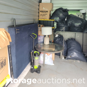Couch, Loveseat, Boxes, Mini Fridge, Clothes, Head Board