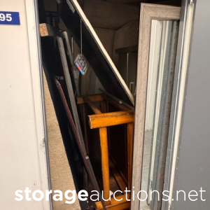 This unit appears to contain, bags, clothing, bedding, stereo, drum, kids toys, duffel bag,s, fan, guitar case, small vanity, mirror, skateboard, air fryer, plastic cubbies, music keyboard.