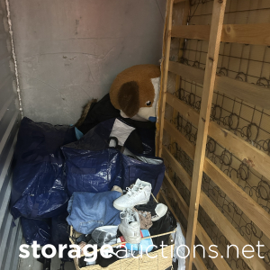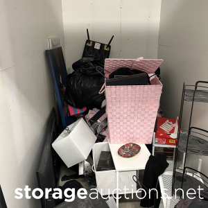 This unit has bags, boxes, clothes, tote