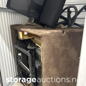 This unit has tree, boxes, mattress, shelves, chairs, totes