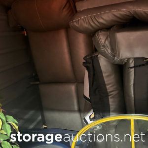 This unit has couches, weed eater, clothes, leaf blower