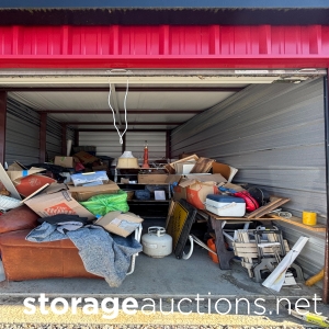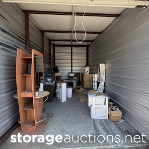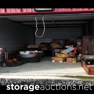 Visible items include wood furniture, glass ornamental items, Household items, Christmas tree box, luggage.