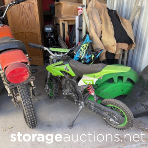 DIRT BIKES, POWER TOOLS, FURNITURE, BOXES, GARDEN, TOTES, PATIO, METAL CHAIRS, TV, COOLER, GRILL, BOOM BOX, LADDERS, MISC ITEMS