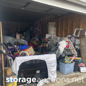 Flat screen TV, vehicle engine, power washer, furniture (a display cabinet, dresser, chair, and folding table) children's toys (bicycles & a dollhouse), and other various household items.