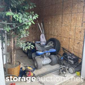 Glass patio table, washer and dryer, kids electric 4wheeler, car jack, lawn mower, and weedwhacker.