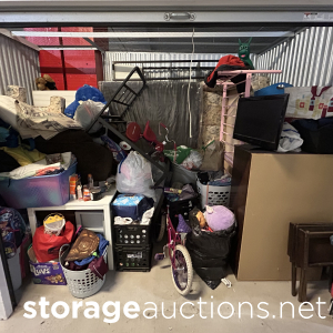 Unit may contain the following items and/or not limited to: household furniture, bedding and items. Misc clothes and footwear, bicycles, video games, golf clubs, Flat screen TV