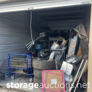 Table saws, porch swing, bicycle, metal shelf, and other various household goods.