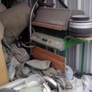 couch, barbeque, television, duffle bag, computer games, furniture, misc. boxes. 10 x 20 large unit FULL of interesting items