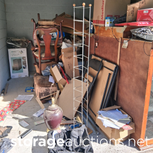 file cabinets, mattresses, chairs, table, pictures lamp, boxes