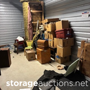 Appears to have Boxes,Bike wheels,DVD'S,Table ,Printer,Water gallons,Bags,Books,Fake plant.