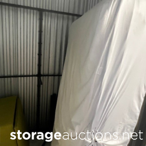appears to be: furniture pads/ furniture plastic wrap/ boxes/ dolly