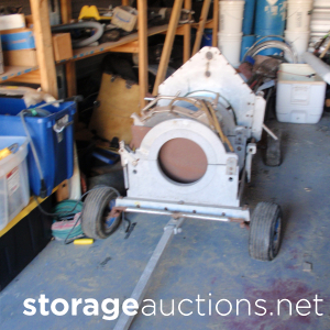 Large unit filled with antiques, misc houseware, clothes, rifle cases, gun locker, misc tools, flintlock pistols and pair of .22 pistols, (Jennings .22 pistol, H&R.22 revolver). (Buyer must pick up firearms and pass background check at Texas Gun Club for pistols by appointment).