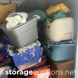 Alot of Lee Child magazines, a bench, boxes, bags and alot of personal items.