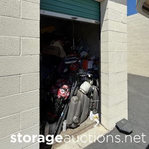 Unit is full of gardening tools, beautiful dining table with eight chairs, matching glass hutch with shelves and matching TV cabinet or dresser with all the drawers. Rubbermaid wheelbarrow. Decorative art. Miscellaneous tables. Large scaffolding. several Ladder. Welders masks. Dishes. DVD player and other equipment. Jewelry box. Kitchen Aid mixer. Golf clubs. Box Hallmark Christmas ornaments. Hummel figurines. Many extension cards. Side tables and more. Unit belongs to Reliableselfstorage. All trash has been cleaned out as well as personal items.